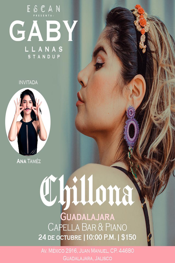 Gaby Llanas regresa a Guadalajara con su increible show de Stand Up Chillona, no te lo puedes perder! Este 24 de Octubre a las 10:00 pm en Capella Bar & Piano.
